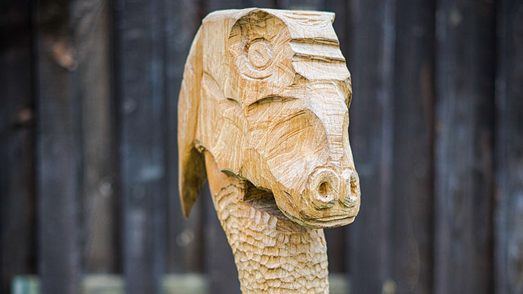 Das verwendete Holz hat manchmal durch sein Alter eine charakteristische Maserung und Färbung bekommen. Unebenheiten, kleinere Risse sowie ausgebesserte Stellen gehören so zu diesem einzigartigen Objekt schlicht dazu und machen seinen besonderen Charakter aus. So sind der Gestaltungsfreiheit kaum Grenzen gesetzt. Mit der Motorsäge arbeite ich zum Beispiel aufwendige Muster in das Holz.